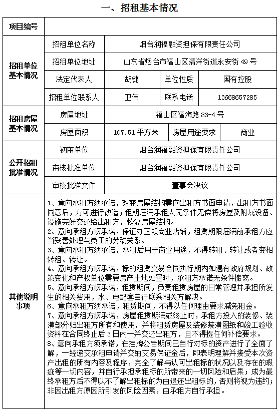 煙臺市南大街267號一樓東側(cè)門頭房招租公告